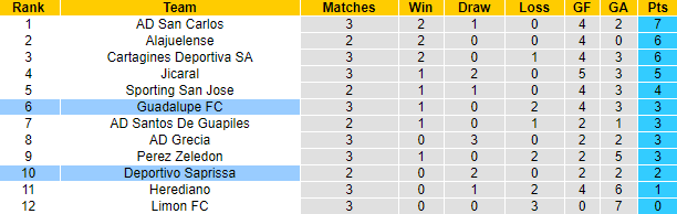 Phong độ và thống kê đối đầu Guadalupe vs Saprissa