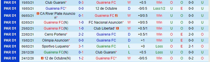 + Soi tỷ lệ kèo tài xỉu: Ở trận đối đầu vừa diễn ra đầu tháng 3 này tại giải VĐQG Paraguay, Guairena có chiến thắng tối thiểu 1-0 trên sân của River Plate (PAR). Như vậy, 4/5 trận vừa rồi của Guairena có kết quả không quá 2 bàn thắng mỗi trận. Bên kia sân, River Plate (PAR) không phải đội bóng có hàng công đáng tin khi tịt ngòi 3 trận mới nhất. Chọn Xỉu.