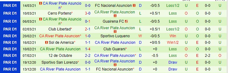 + Thống kê 10 trận gần nhất của River Plate (PAR)
