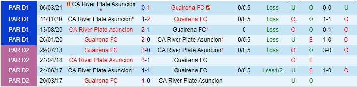 Phong độ và thống kê đối đầu Guairena - River Plate (PAR) gần đây: