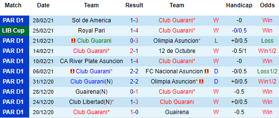 + Lịch sử đối đầu Guarani vs Royal Pari