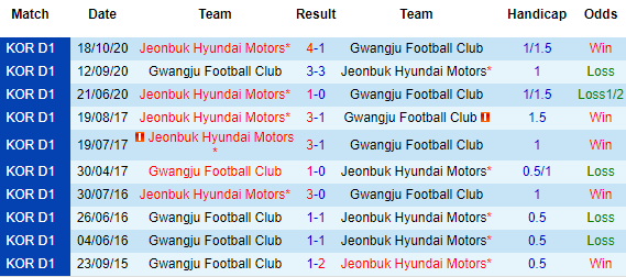 + Lịch sử đối đầu Gwangju vs Jeonbuk Hyundai