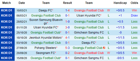 + Thống kê 10 trận gần nhất của Gwangju