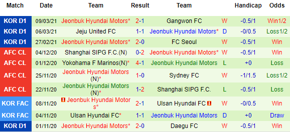 + Thống kê 10 trận gần nhất của Jeonbul Hyundai