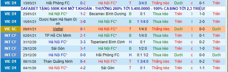 + Thống kê 10 trận gần nhất của Hà Nội FC