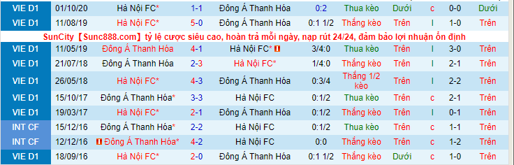 + Lịch sử đối đầu Hà Nội FC vs Thanh Hoá