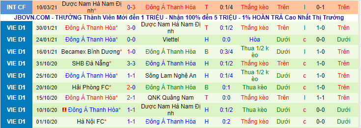 + Thống kê 10 trận gần nhất của Thanh Hoá