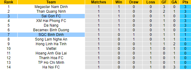 Bảng xếp hạng V-League 2021