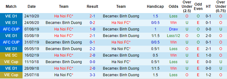 Phong độ và thống kê đối đầu Hà Nội vs B.Bình Dương