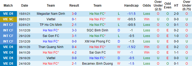 + Thống kê 10 trận gần nhất của Hà Nội