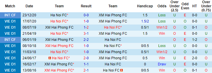 Phong độ và thống kê đối đầu Hải Phòng vs Hà Nội