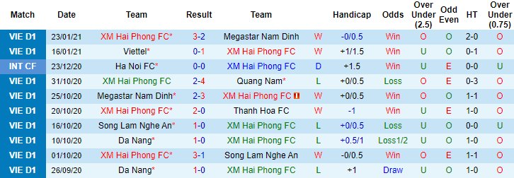 + Thống kê 10 trận gần nhất của Hải Phòng