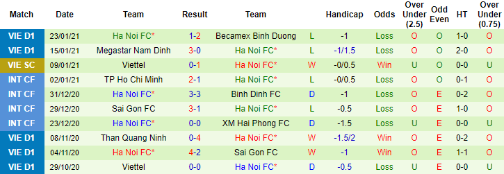 + Thống kê 10 trận gần nhất của Hà Nội