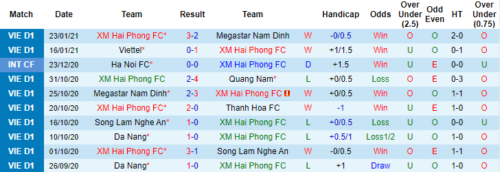 + Thống kê 10 trận gần nhất của Hải Phòng