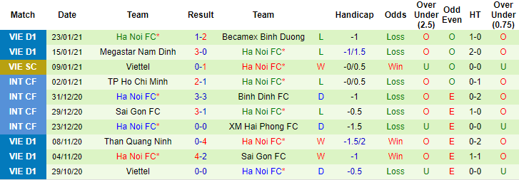 + Thống kê 10 trận gần nhất của Hà Nội