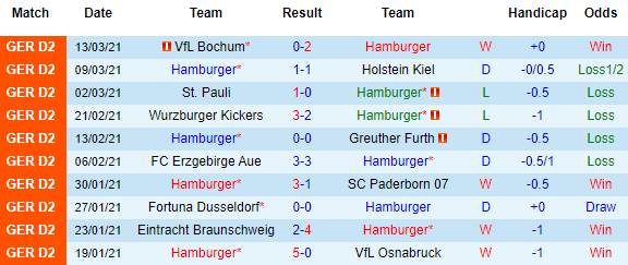 + Thống kê 10 trận gần nhất của Hamburger