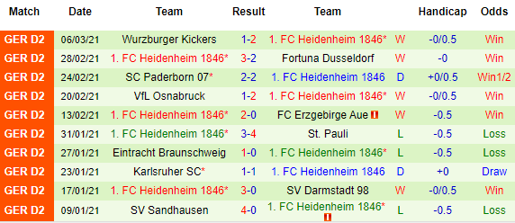 + Thống kê 10 trận gần nhất của Heidenheim