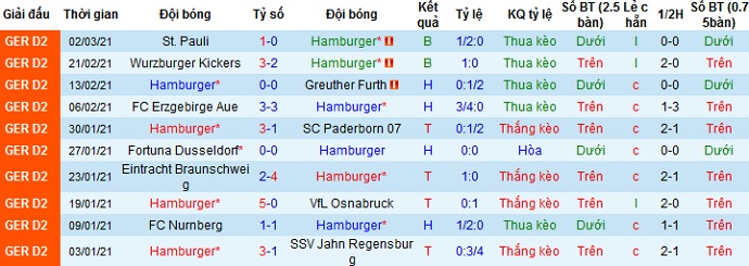 + Thống kê 10 trận gần nhất của Hamburger