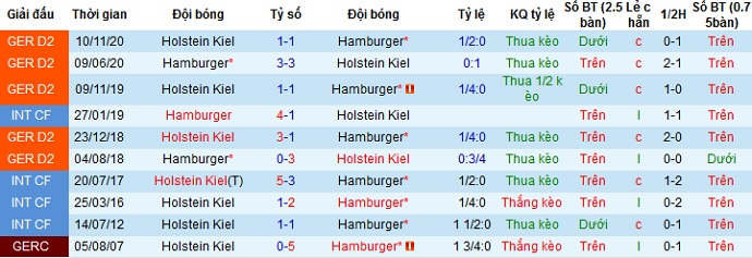 Thế nhưng trong 3 lần gặp nhau gần nhất hai đội đều đang bất phân thắng bại. Ngoài ra Hamburger cũng đang có dấu hiệu sa sút ở các vòng đấu gần đây, nên với phong độ vẫn khá ổn định của Holstein Kiel thì có lẽ cửa dưới sẽ là sự lựa chọn an toàn và hợp lý nhất.