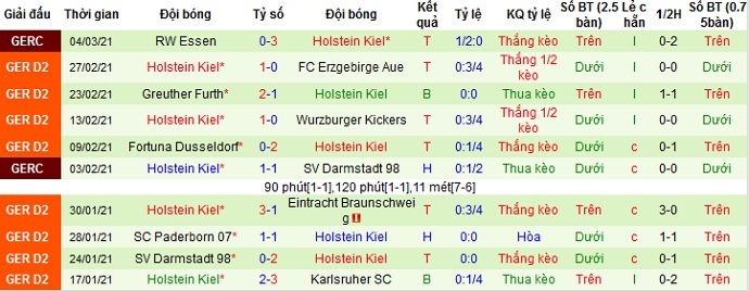 + Thống kê 10 trận gần nhất của Holstein Kiel