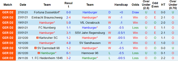 Hamburger là chuyên gia thắng kèo của Bundesliga 2 mùa 2020/21. Tỷ lệ thắng kèo của Hamburger lên tới 60.11%, cao nhất giải đấu. Trong khi đó, tỷ lệ thắng kèo của Paderborn chỉ ở mức 50.0%.