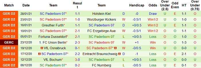 - Thống kê 10 trận gần nhất của Paderborn