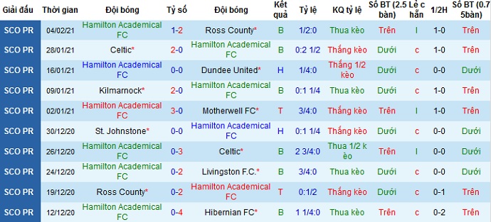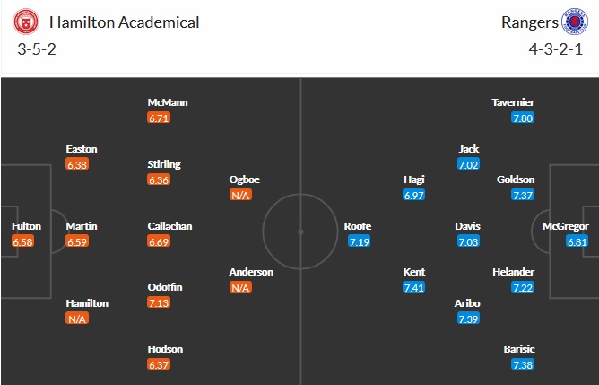 Việc Hamilton không thể có điểm được trước đội đầu bảng là điều ít người dám nghi ngờ. Thế nhưng ở cả 3 trận thua gần đây Hamilton đều không để thua cách biệt quá 2 bàn. Trong khi Rangers cũng không chơi hủy diệt ở các trận đấu trên sân khách gần đây, bởi thế có lẽ chọn cửa dưới ở trận đấu này có phần hợp lý hơn.