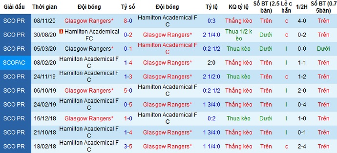 + Lịch sử đối đầu Hamilton vs Rangers