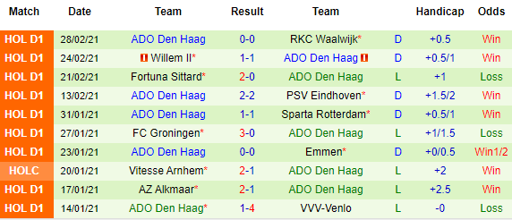+ Thống kê 10 trận gần nhất của ADO Den Haag