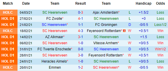 + Thống kê 10 trận gần nhất của Heerenveen