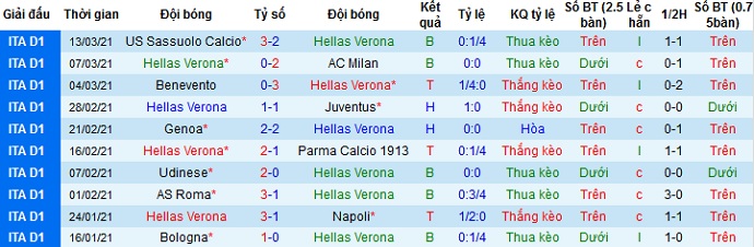 + Thống kê 10 trận gần nhất của Hellas Verona