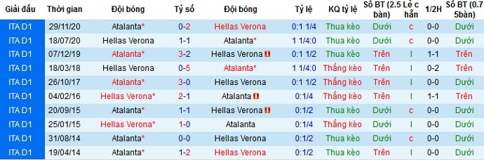 Mặc dù Atalanta đang để thua ở cả 2 trận du đấu gần nhất nhưng đều trước các đội bóng hàng đầu của giải đấu cũng như châu lục, còn lại với các đội bóng khác thành tích của Atalanta vẫn đang khá tốt. Trái lại Hellas Verona có phần sa sút ở thời gian gần đây, nên có lẽ chọn cửa trên vẫn là sự lựa chọn hợp lý hơn cả.