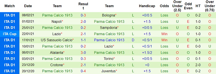 Parma đang trải qua quãng thời gian tệ hại nhất kể từ khi Serie A 2020/21 khởi tranh. Họ không thắng cả 13 vòng đấu vừa qua: hòa 4, thua 9. 10 vòng đấu gần nhất, Parma thậm chí chỉ thu về 1 điểm: hòa 1 nhưng thua tới 9.