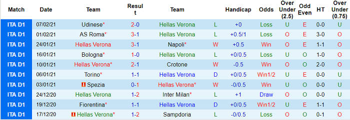 - Thống kê 10 trận gần nhất của Hellas Verona