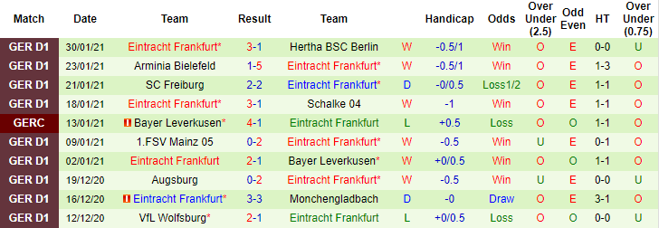 + Thống kê 10 trận gần nhất của Eintracht Frankfurt