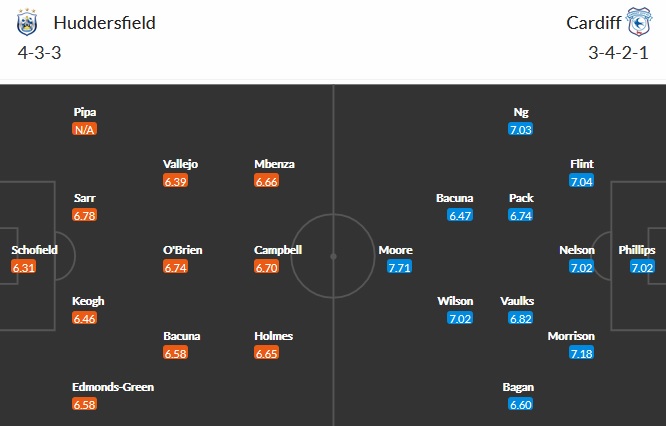 Đội hình dự kiến Huddersfield vs Cardiff City