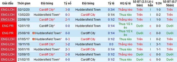 + Lịch sử đối đầu Huddersfield vs Cardiff City