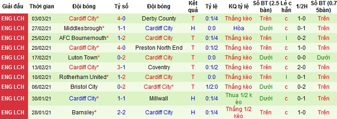 + Thống kê 10 trận gần nhất của Cardiff City