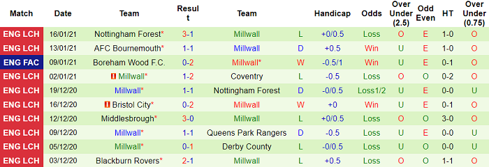 Thành tích của Millwall thời gian qua không thực sự ấn tượng. Họ không thắng tới 14/15 trận gần nhất thuộc khuôn khổ Championship: hòa 8, thua 6.