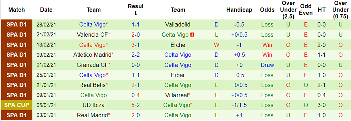 - Thống kê 10 trận gần nhất của Celta Vigo
