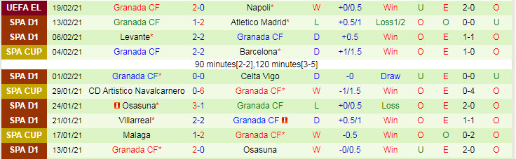 + Thống kê 10 trận gần nhất của Granada