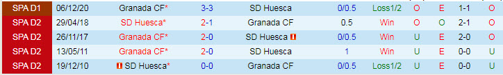 Phong độ và thống kê đối đầu Huesca - Granada gần đây: