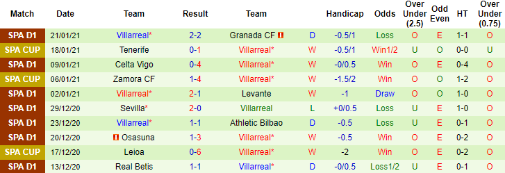 + Thống kê 10 trận gần nhất của Villarreal
