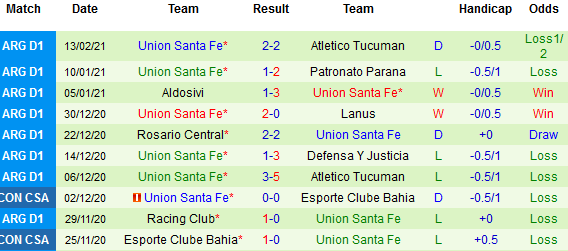 + Thống kê 10 trận gần nhất của Union Santa Fe