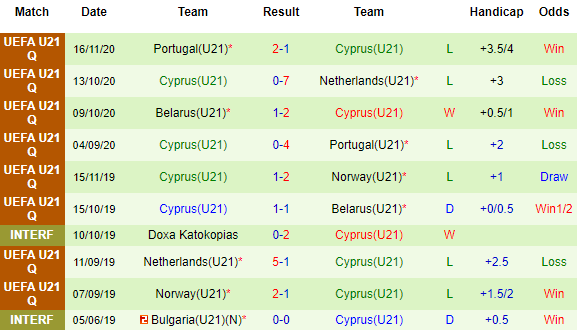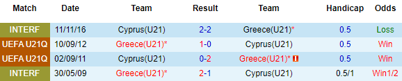 Trong khi đó thì U21 Síp cho thấy thực lực yếu kém tương tự như ĐTQG của họ. Ở 2 trận mới nhất, U21 Síp toàn thua, chỉ ghi được 1 bàn và thủng lưới tổng cộng 9 lần. Không chỉ thua kém về phong độ, U21 Síp còn lép vế về đối đầu khi hòa 1, thua 3 ở 4 lần gặp U21 Hy Lạp mới đây.