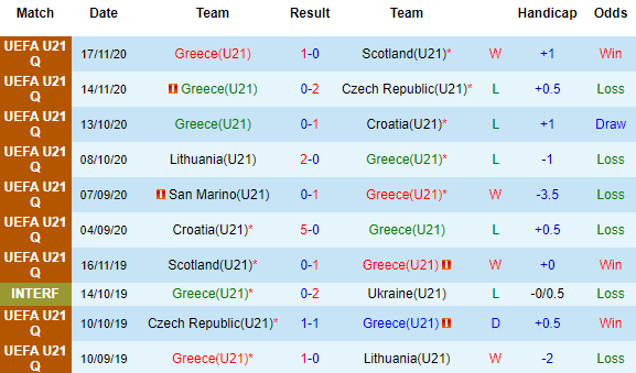 + Thống kê 10 trận gần nhất của Hy Lạp U21
