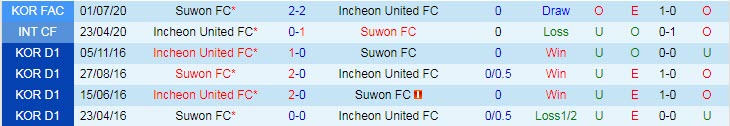 Phong độ và thống kê đối đầu Incheon - Suwon gần đây: