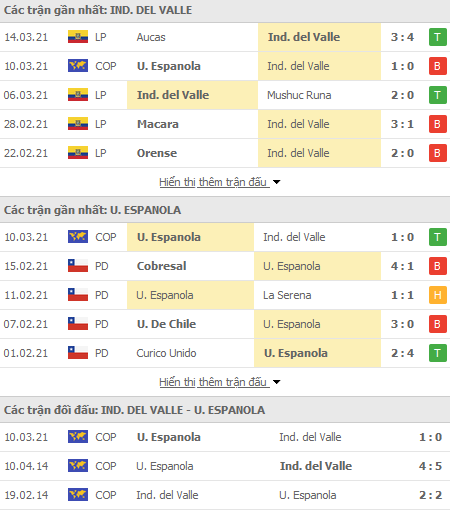 Phong độ và thống kê đối đầu gần đây Independiente del Valle vs Union Espanola:
