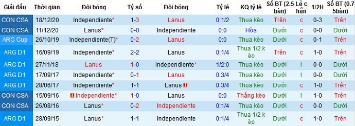 Thế nhưng trong cả 7 lần đối đầu gần nhất giữa hai đội, Lanús vẫn đang bất bại trước Independiente với 4 trận thắng và 3 trận hòa. Bởi thế chọn cửa dưới ở trận đấu này hoàn toàn có cơ sở và hợp lý.