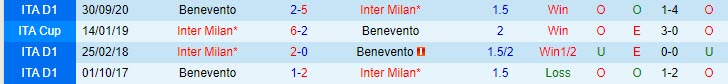 Phong độ và thống kê đối đầu Inter vs Benevento gần đây: